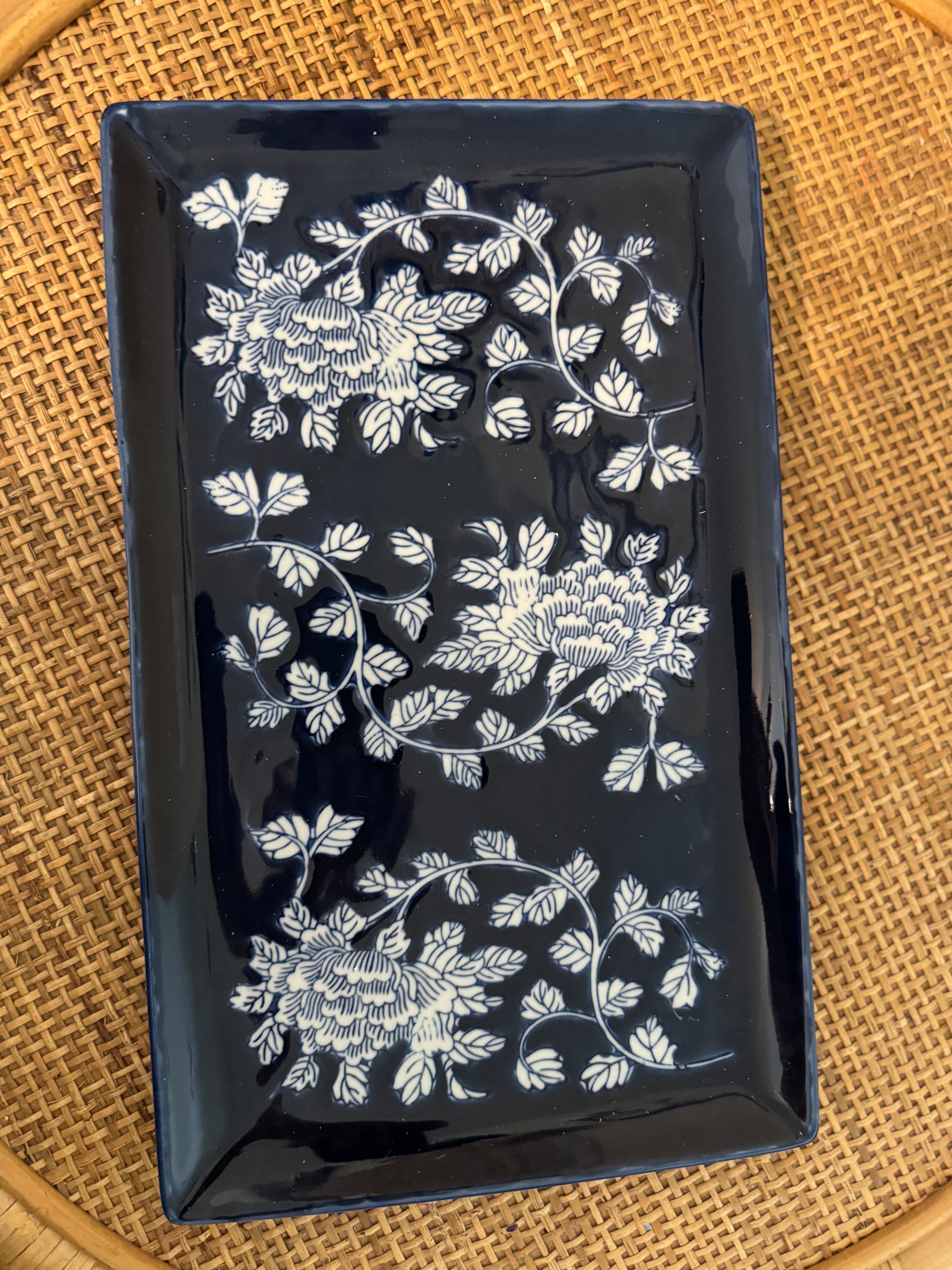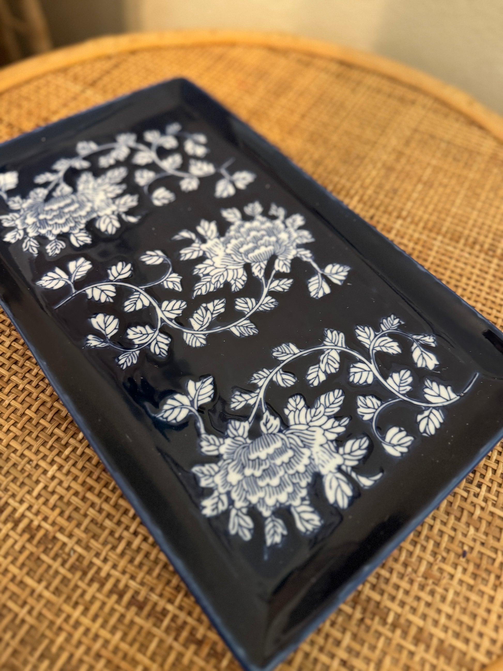 Classic blue pattern ceramic tray for kitchen, bath or home decor.