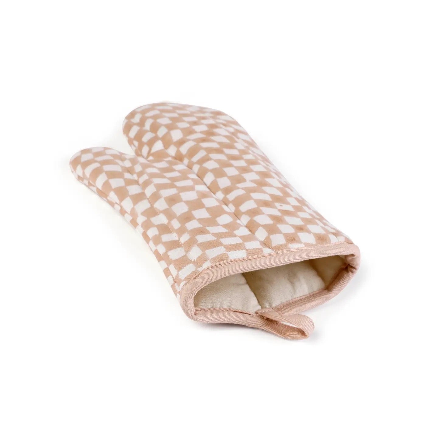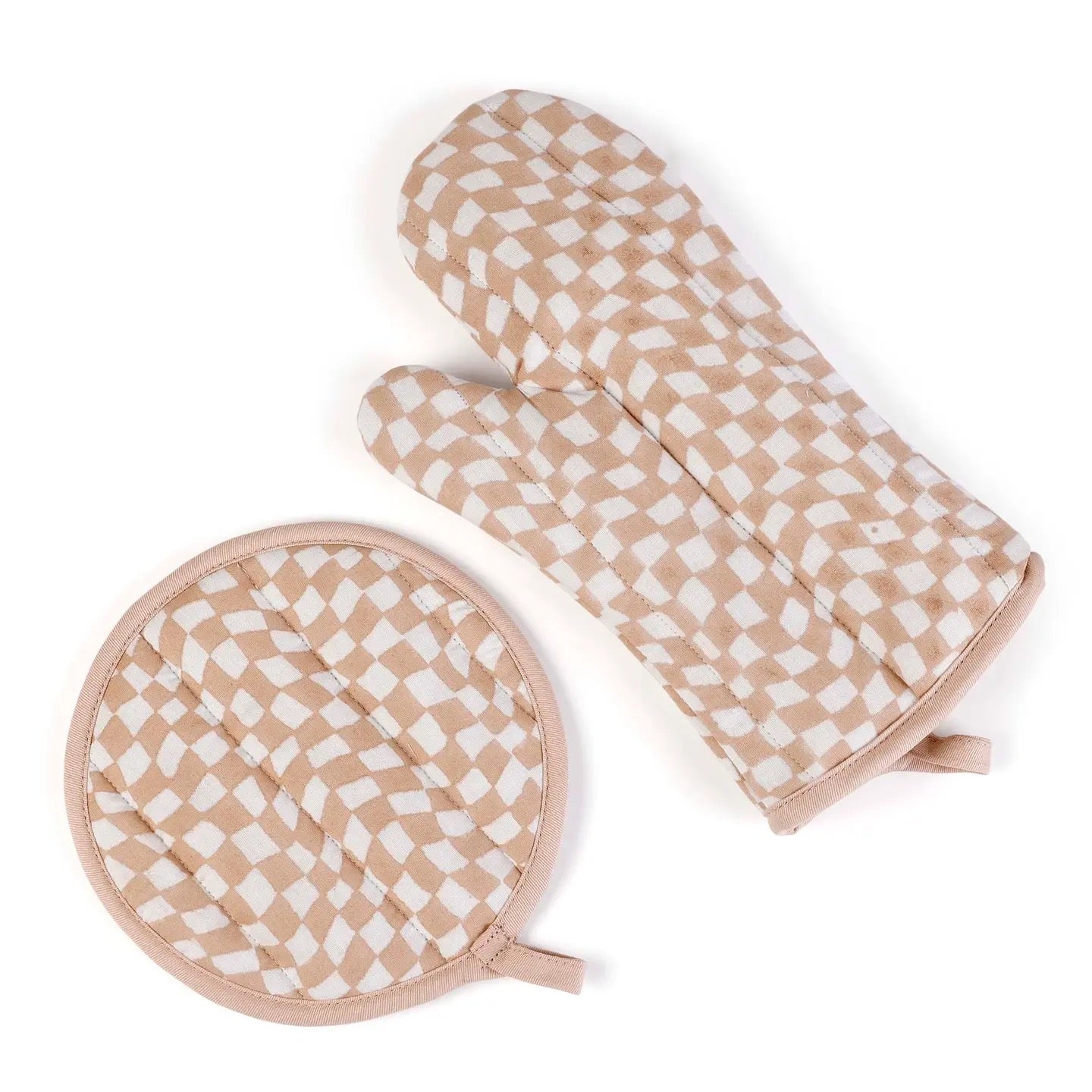 Checked Nude Oven Mitts & Pot Holder