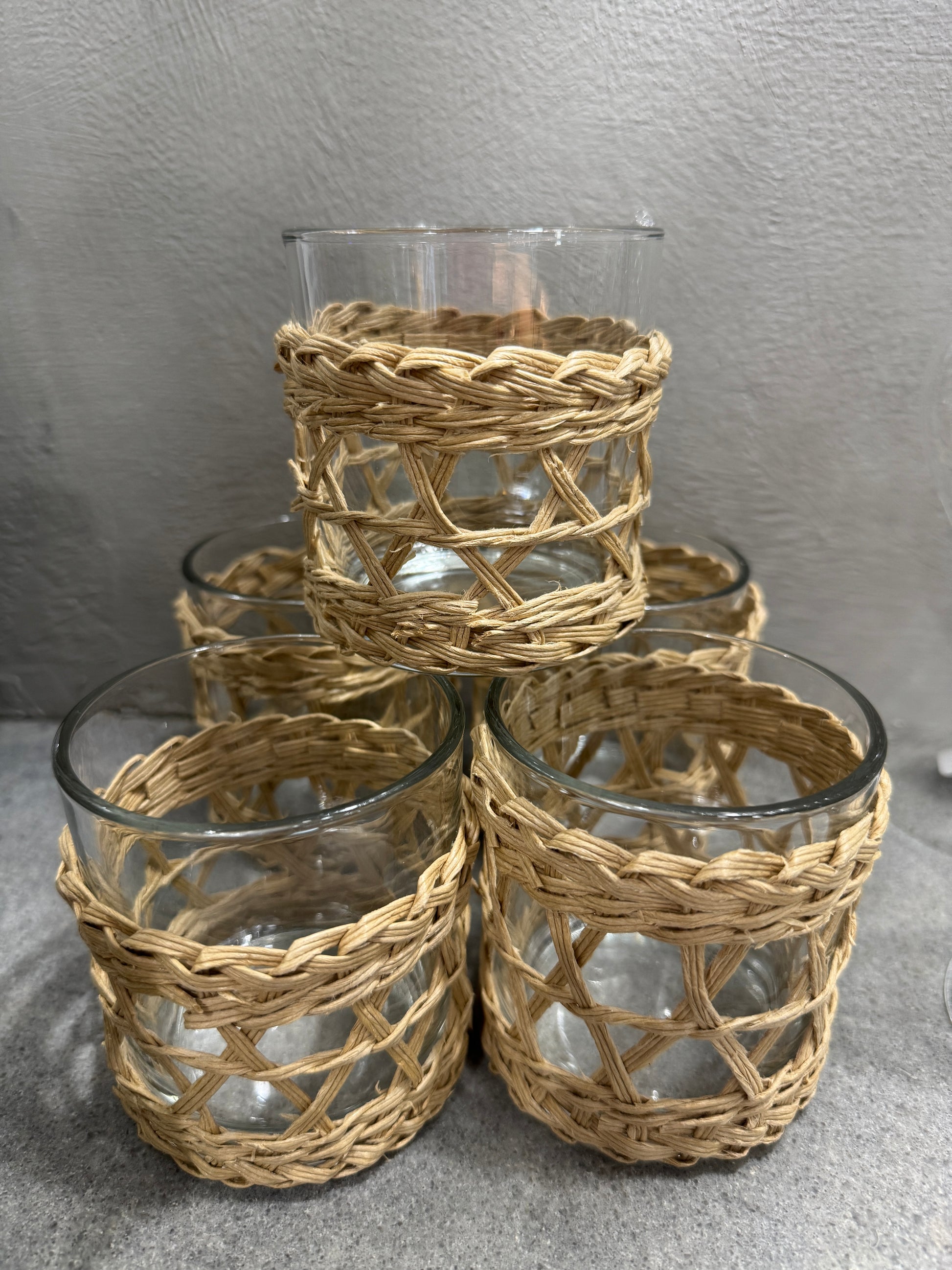 Elevate your glassware collection with these woven sleeve glasses. Perfect for water or an after dinner drink!