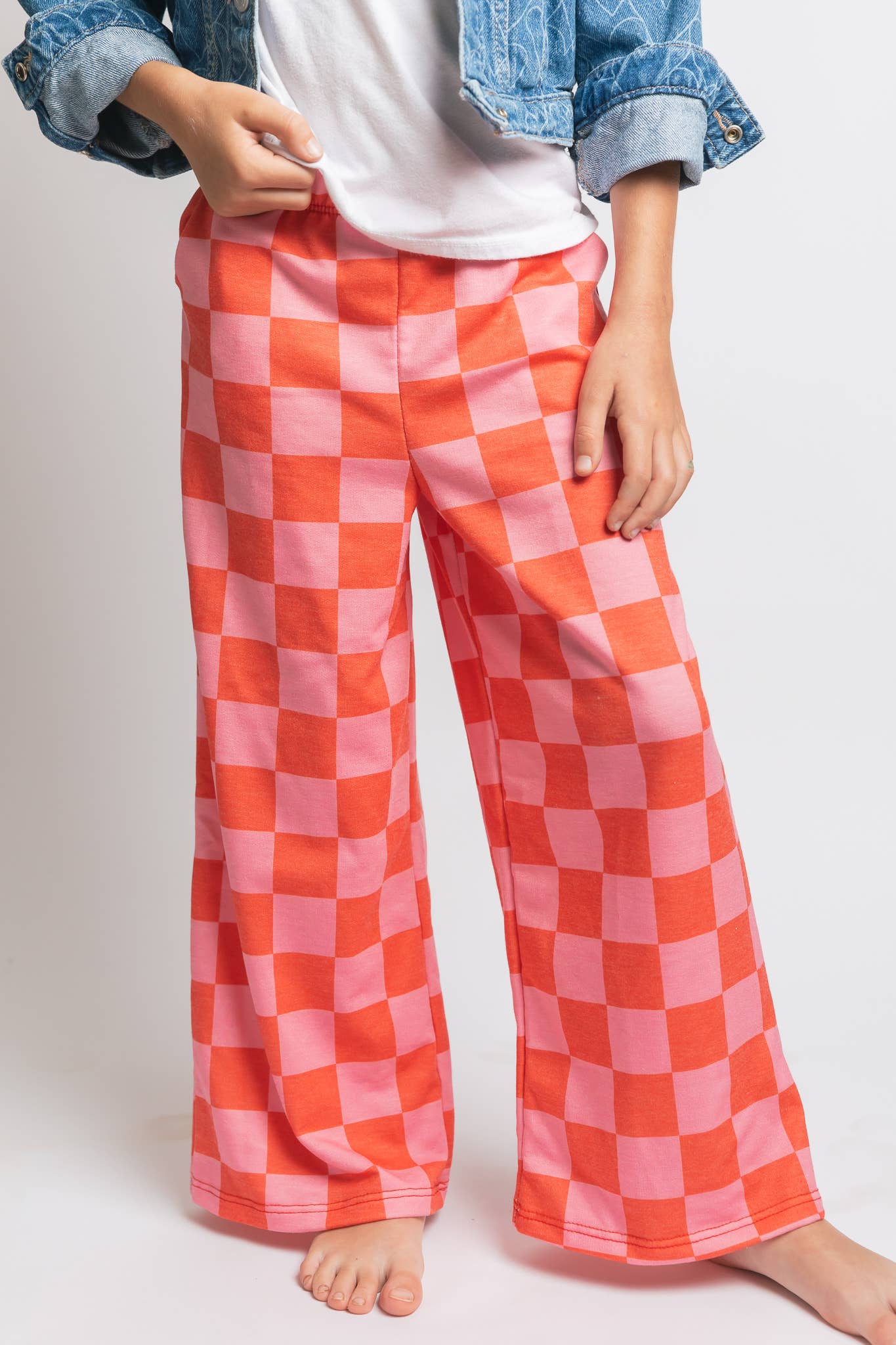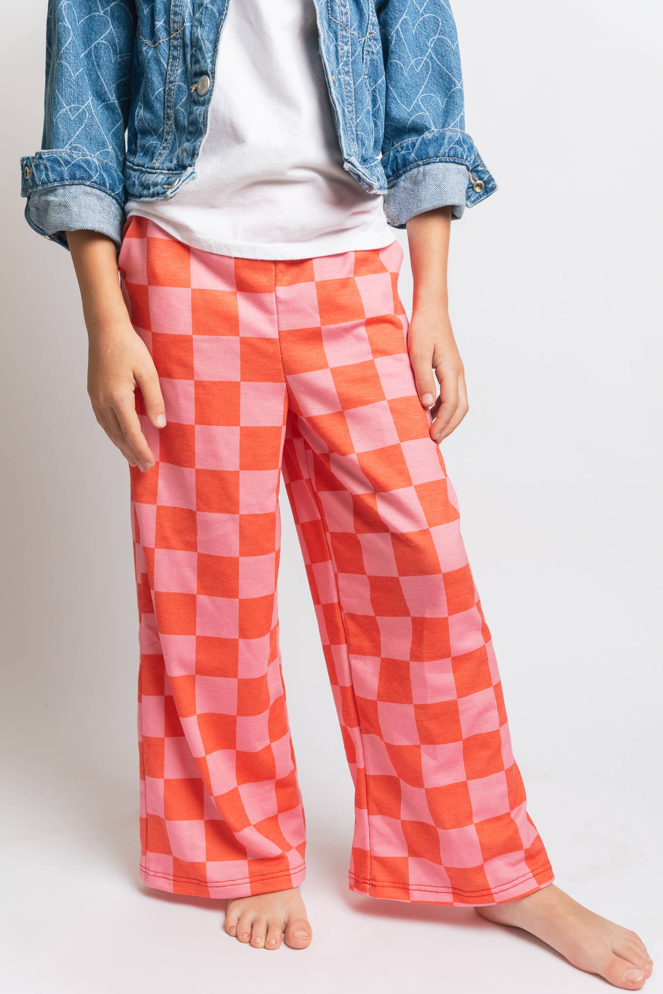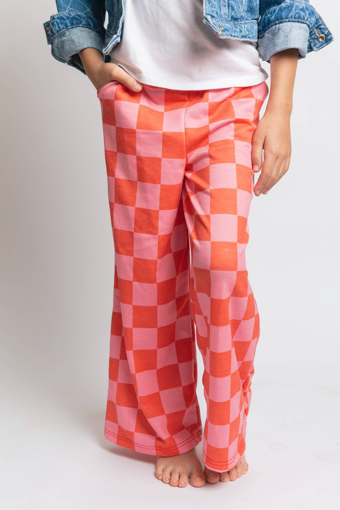 HIGH WAIST CHECKERD STRAIGHT LEG KNIT PANTS
