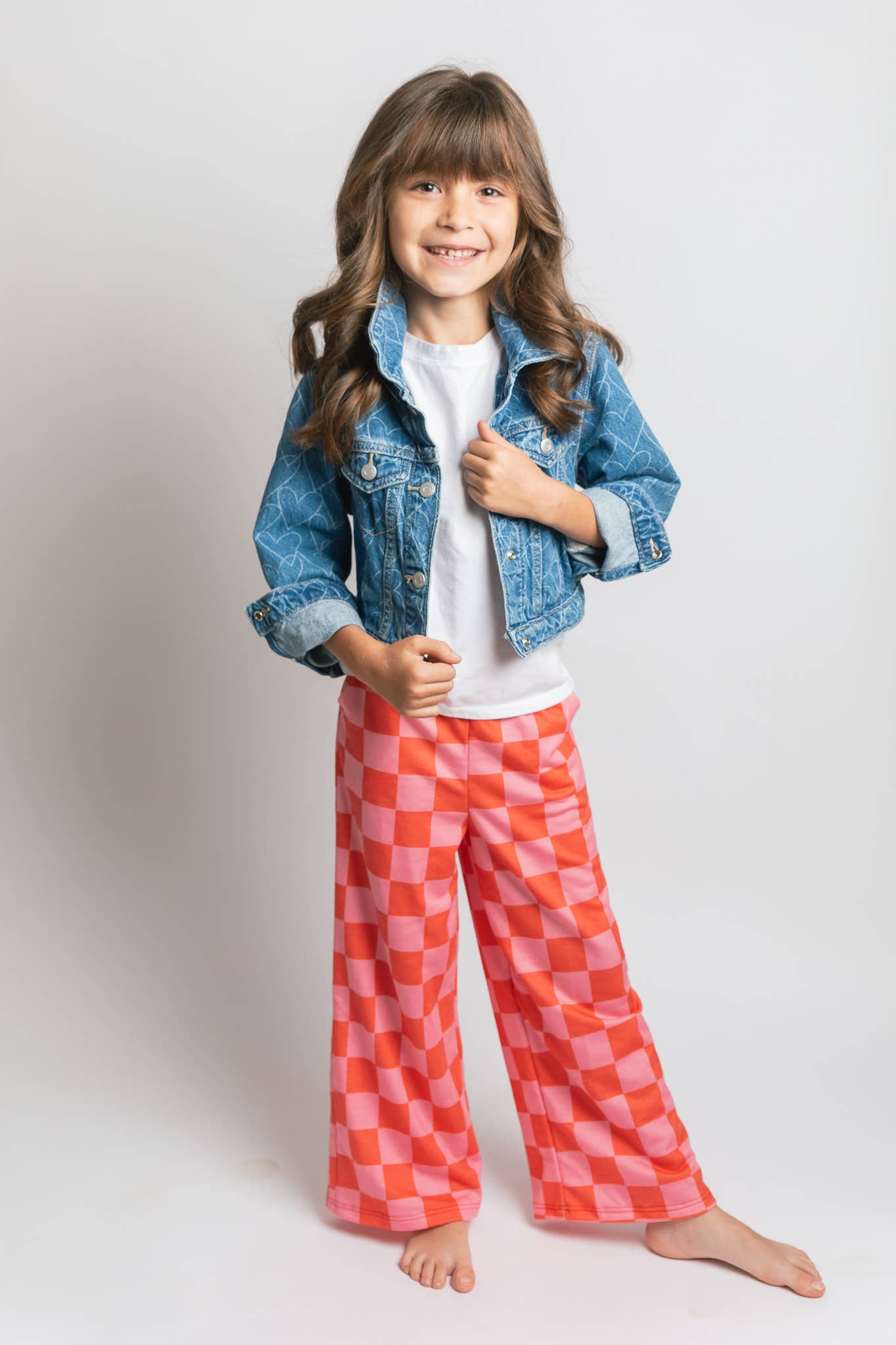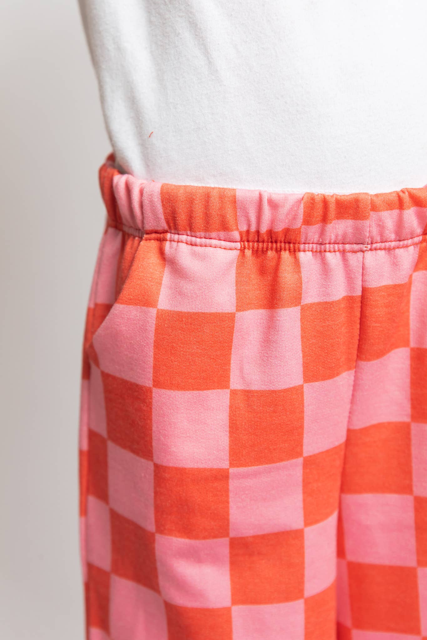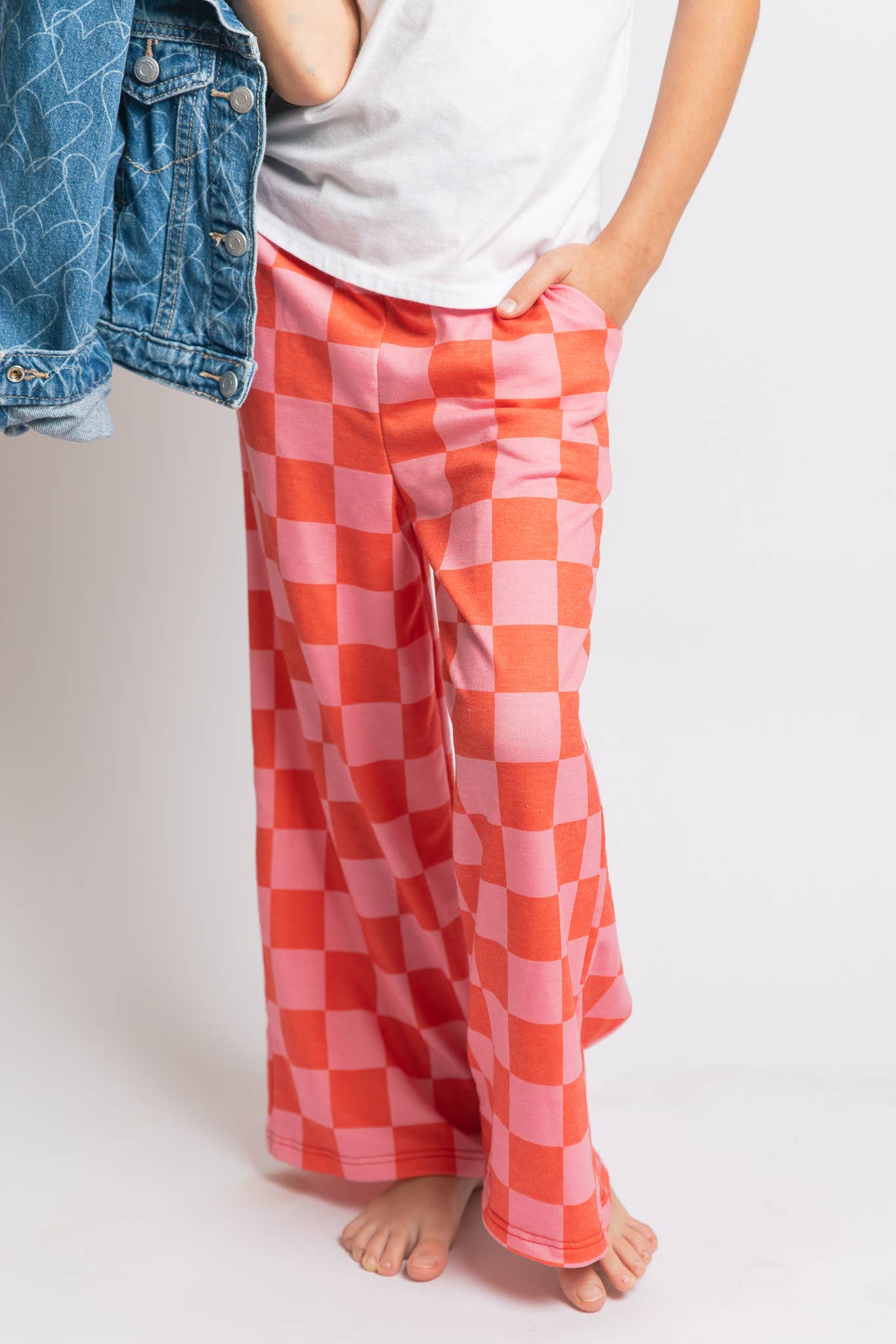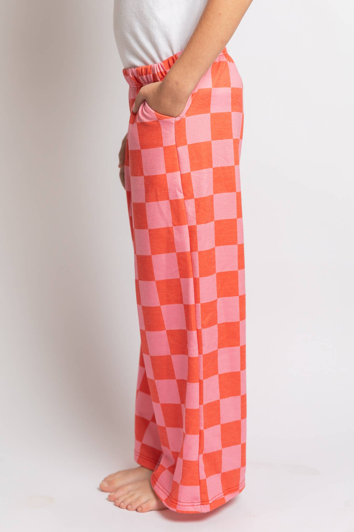 HIGH WAIST CHECKERD STRAIGHT LEG KNIT PANTS