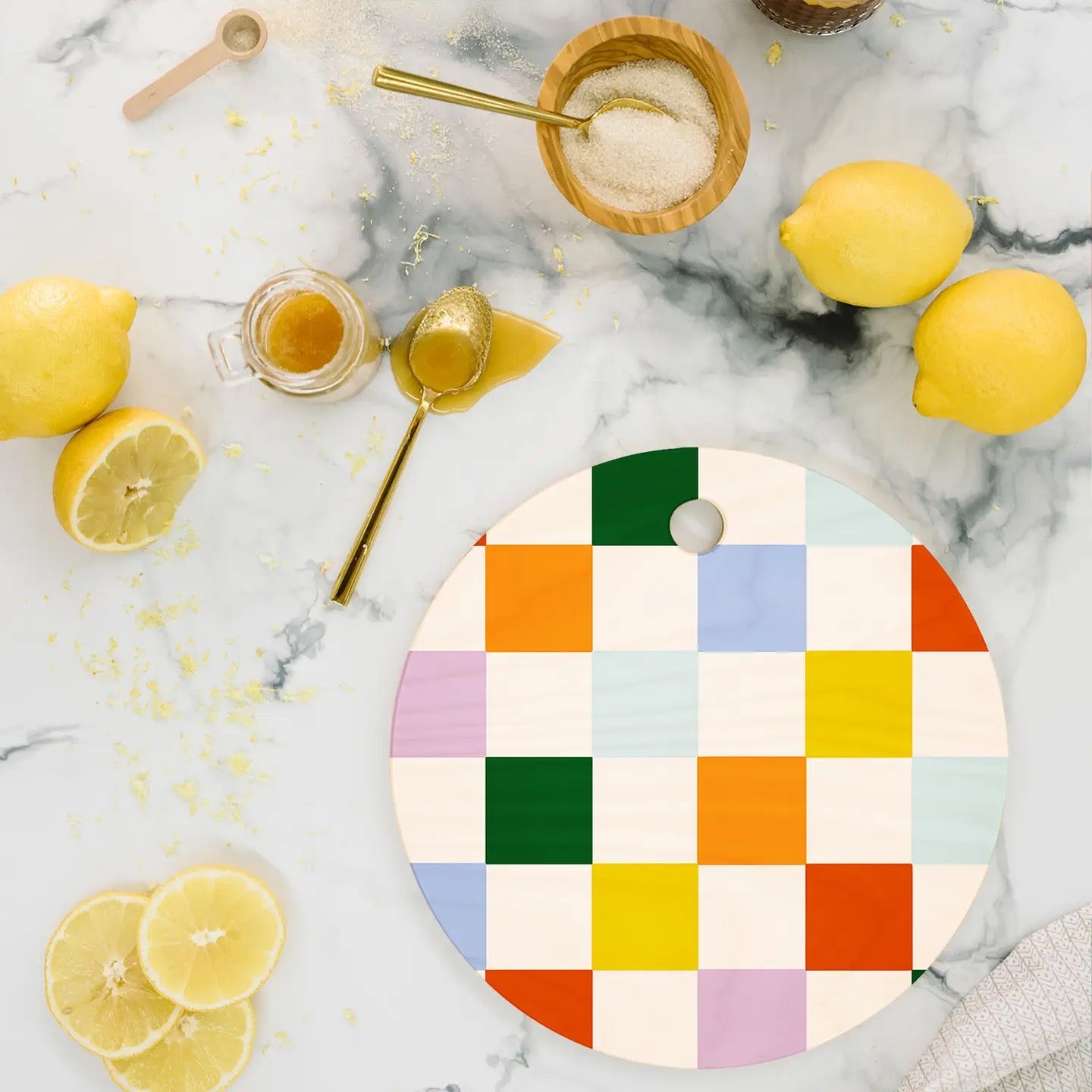 Lane and Lucia Rainbow Checkerboard Cutting Board Round