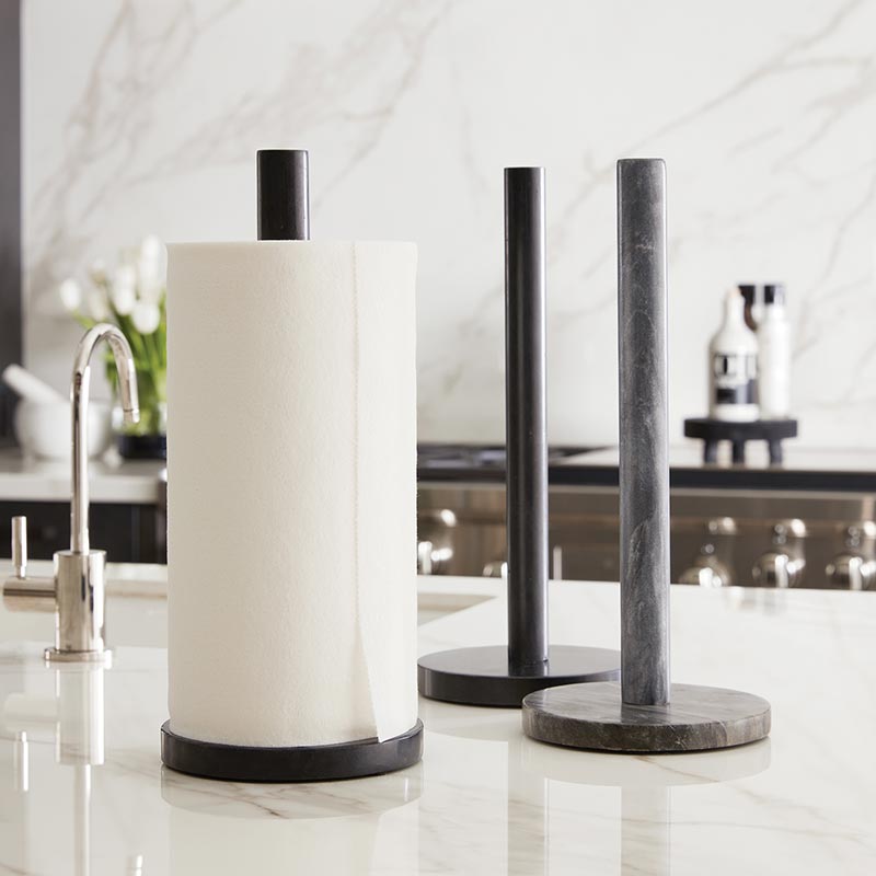 Add our grey marble free standing paper towel holder to your kitchen. Holds any size paper towel roll. Marble design keeps it on trend and elegant. Due to the natural veining in the marble, color variations will occur.