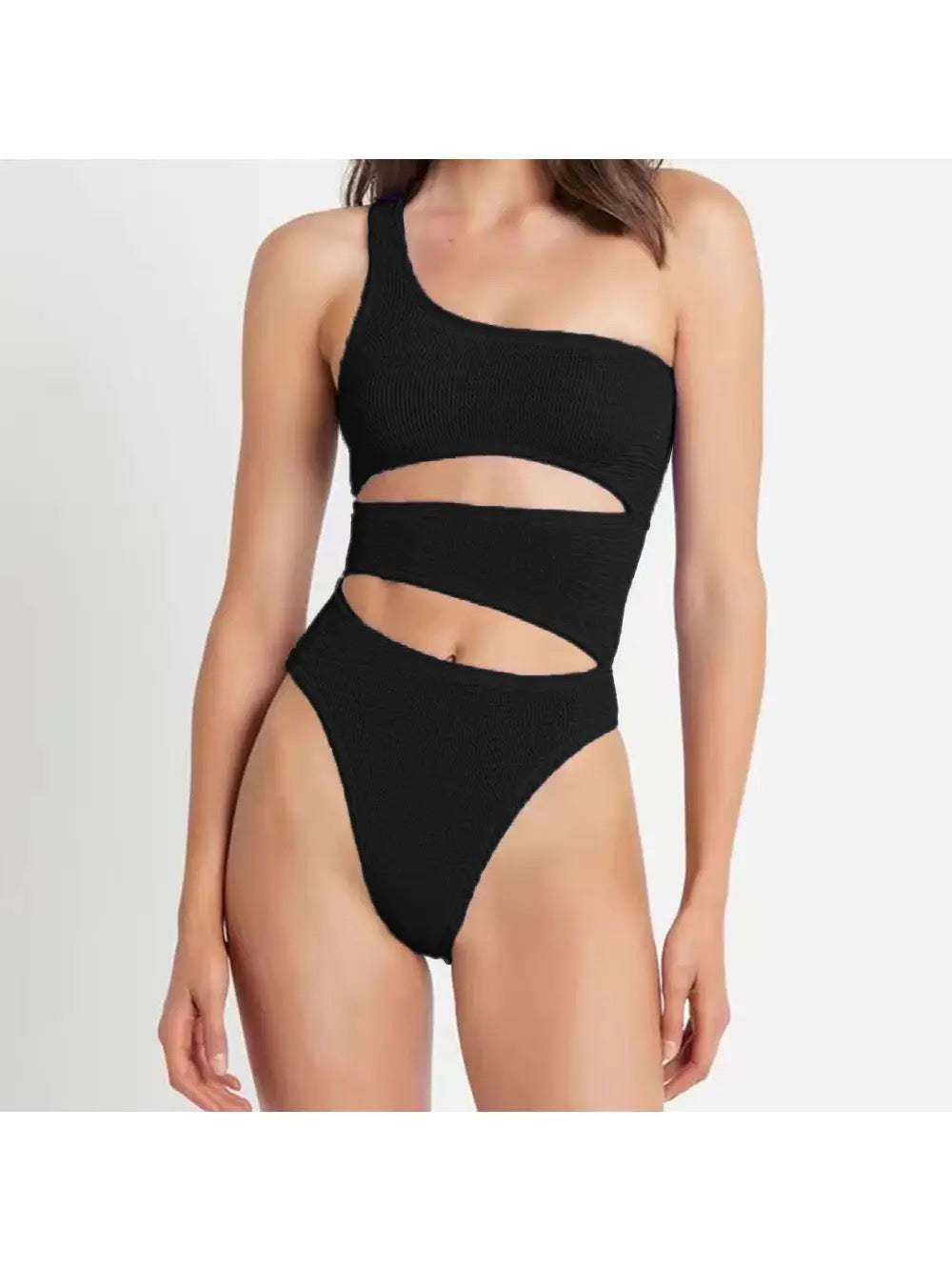 One Shoulder Black One Piece Cutout Swimsuit