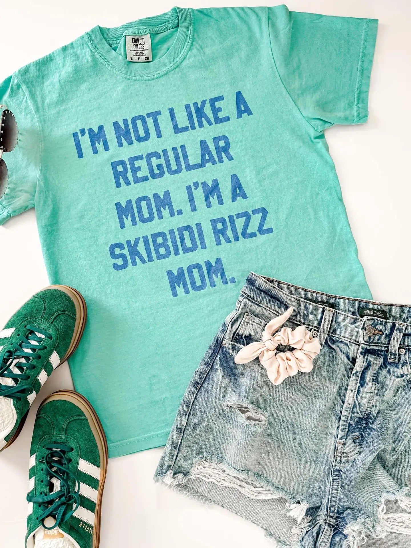Looking for the perfect Mother’s Day gift for the mom who stays ahead of the trends? This hilarious "I'm Not Like a Regular Mom, I'm a Skibidi Rizz Mom" graphic tee is made for the cool moms who bring the rizz, keep up with the memes, and still handle mom duties like a pro. Whether she’s carpooling with Skibidi moves or dropping Gen Z lingo at the PTA meeting, this shirt is the ultimate funny mom gift.