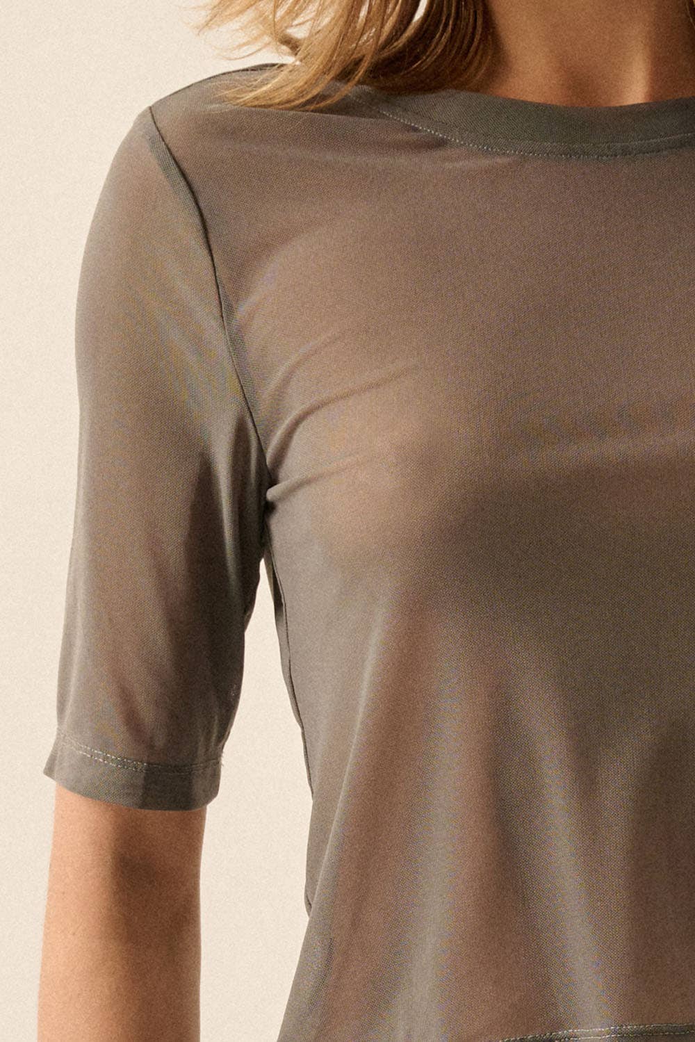 - Sheer mesh fabric.