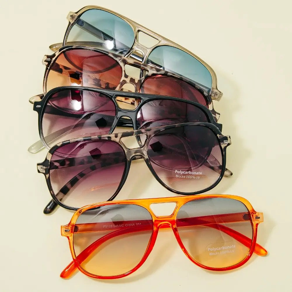 This set of sunglasses brings a stunning vintage style gradient aviator sunglasses set style. Elevate your ensemble with this chic, timeless set of sunglasses.